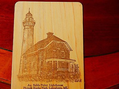 VINTAGE WOODEN POST CARD AU SABLE POINT LIGHTHOUSE PICTURE ROCKS MICHIGAN