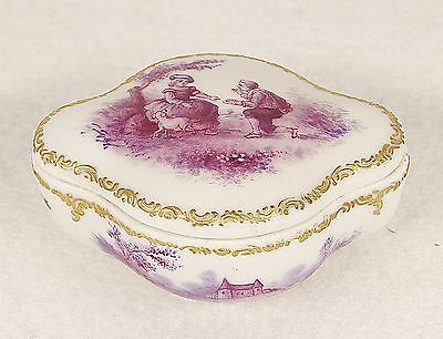 ANTIQUE FRENCH SEVRES HAND PAINTED PORCELAIN TRINKET PILL BOX