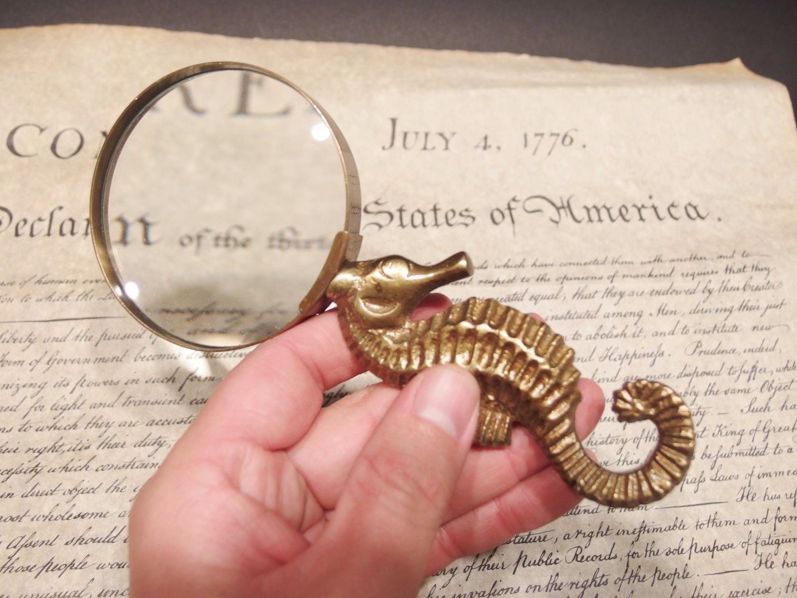 Title (ebay affiliate link): Vintage Antique Style Brass Seahorse Magnifying Glass Desk Hand Lens