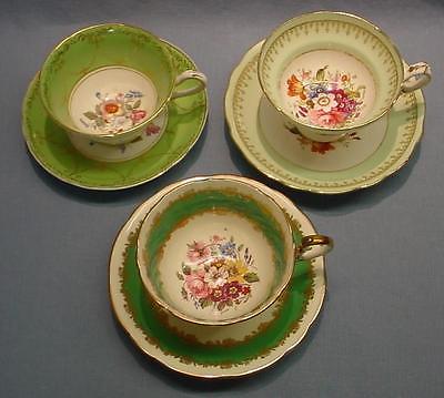 3 English Teacups & Saucers - Hammersley, Grosvenor, Aynsley