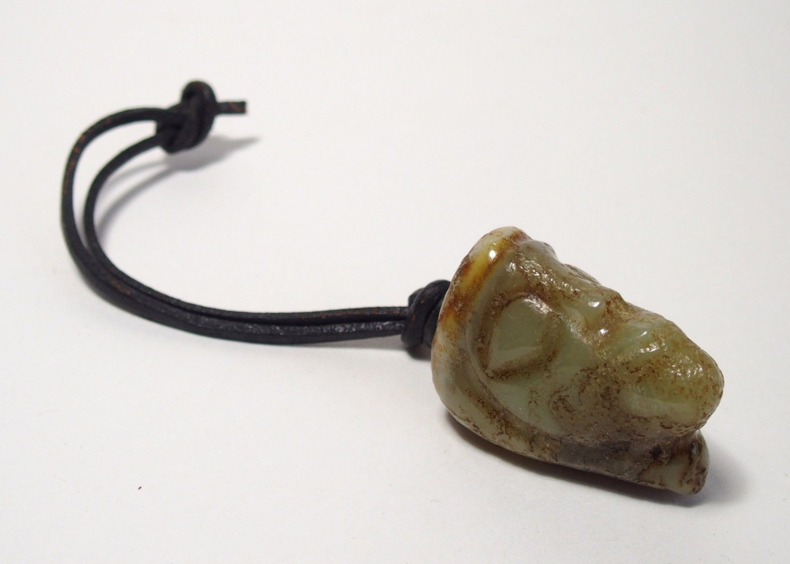 Fine ancient Mayan Pre-Columbian jade head pendant