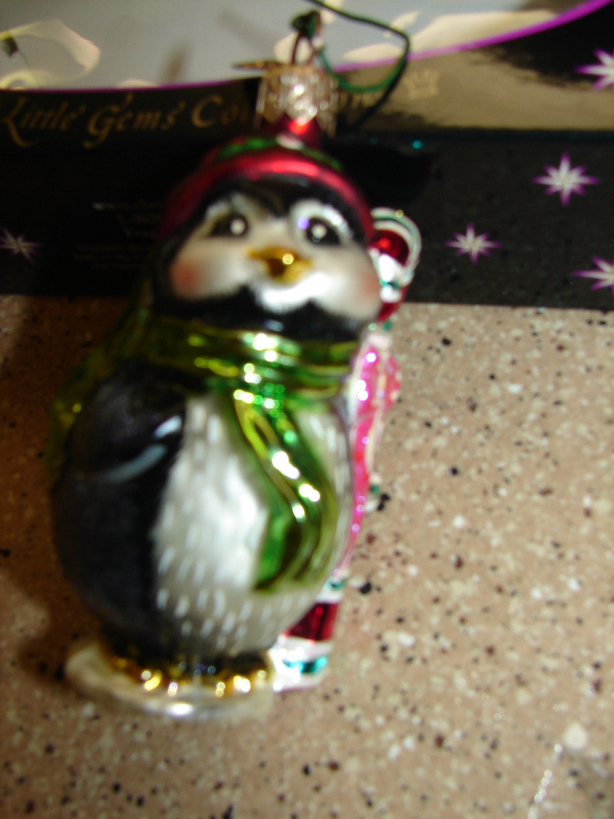Title (ebay affiliate link): Radko Ornament Peppermint Penny Little Gem Penguin