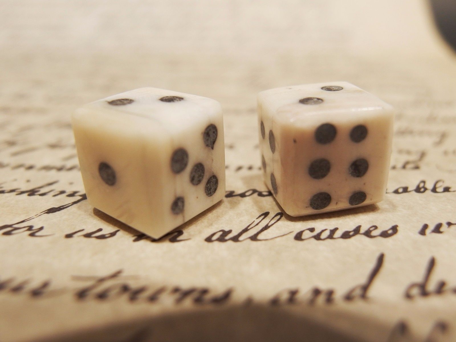 Title (ebay affiliate link): Pair 1/2" Antique Vintage Style Genuine Bone Gambling Handmade Dice Casino Game