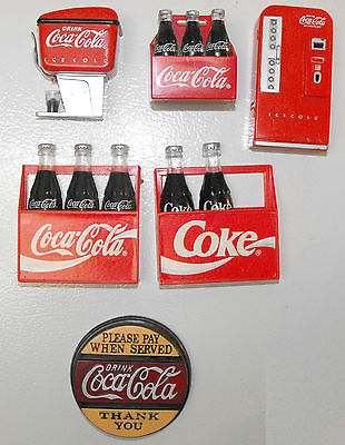6 Vintage COCA COLA COKE 3D REFRIDGERATOR MAGNETS, Bottles, Machine, Button