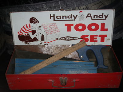 Vintage 1950 Handy Andy Toy Tools Set With Ruler