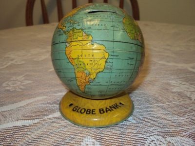 VINTAGE CHEIN TIN WORLD GLOBE BANK