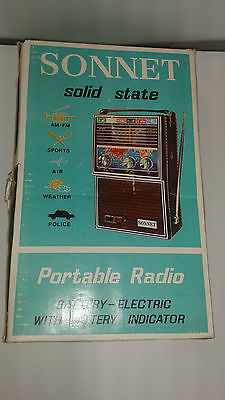 VINTAGE SONNET SOLID STATE AM FM POLICE WEATHER PORTABLE RADIO USED IN BOX