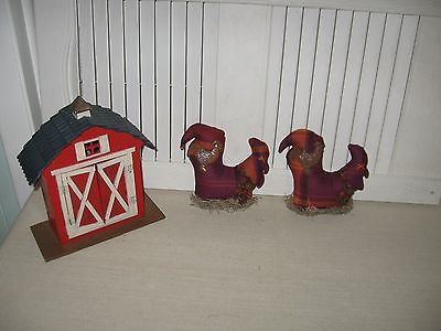 Handmade Primitive Fabric Bowl Fillers "Roosters/Hens" Set of 2