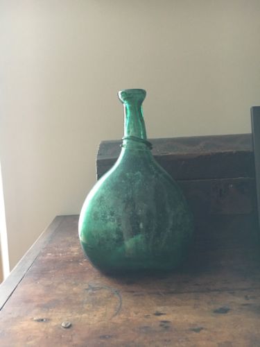 Title (ebay affiliate link): 18th C Early Old Antique Green Glass Flask Hand Blown Bottle Pontil Onion