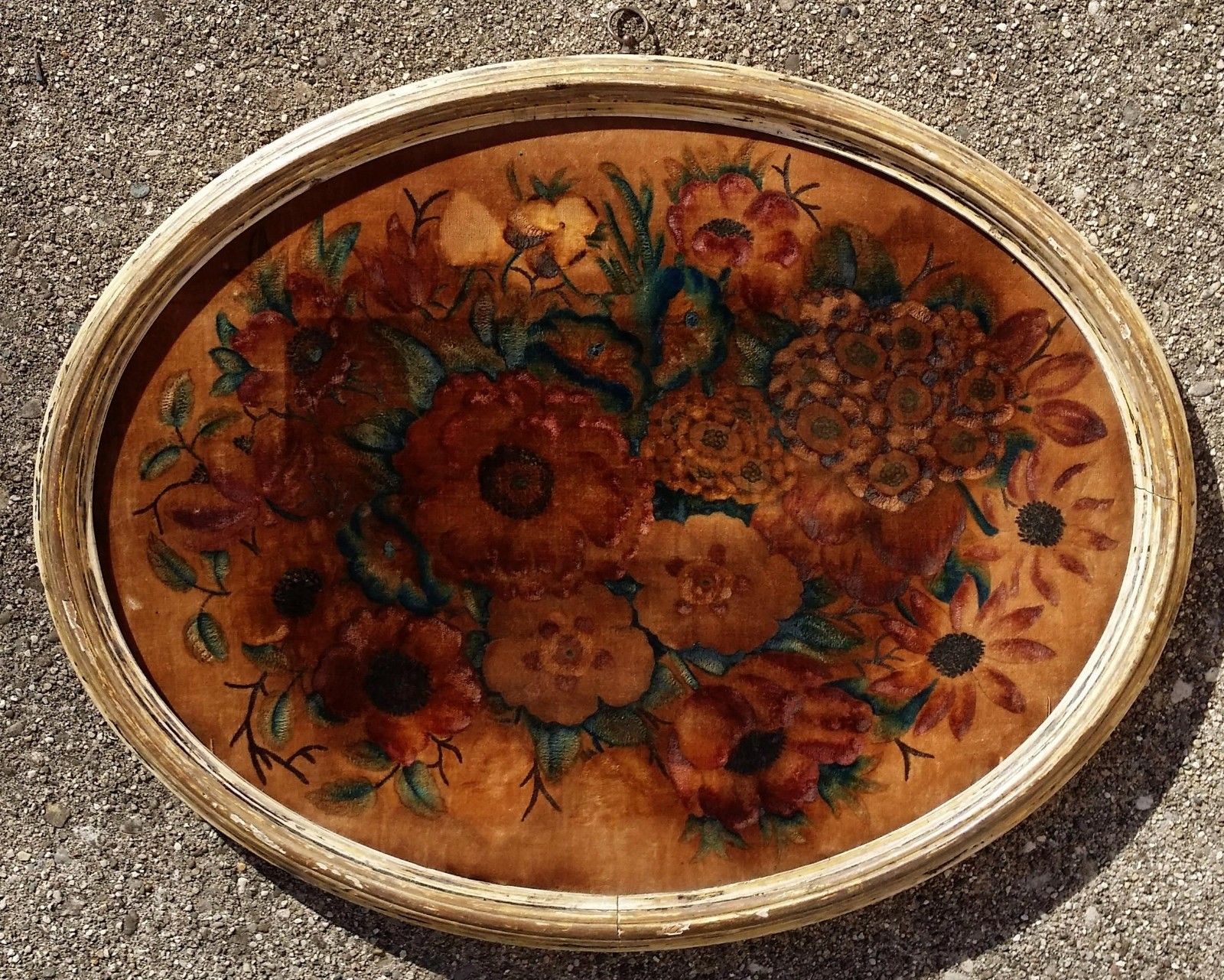 Title (ebay affiliate link): Antique THEOREM Oval Watercolor PAINTING on VELVET Flowers Orig FRAME 1825-1850