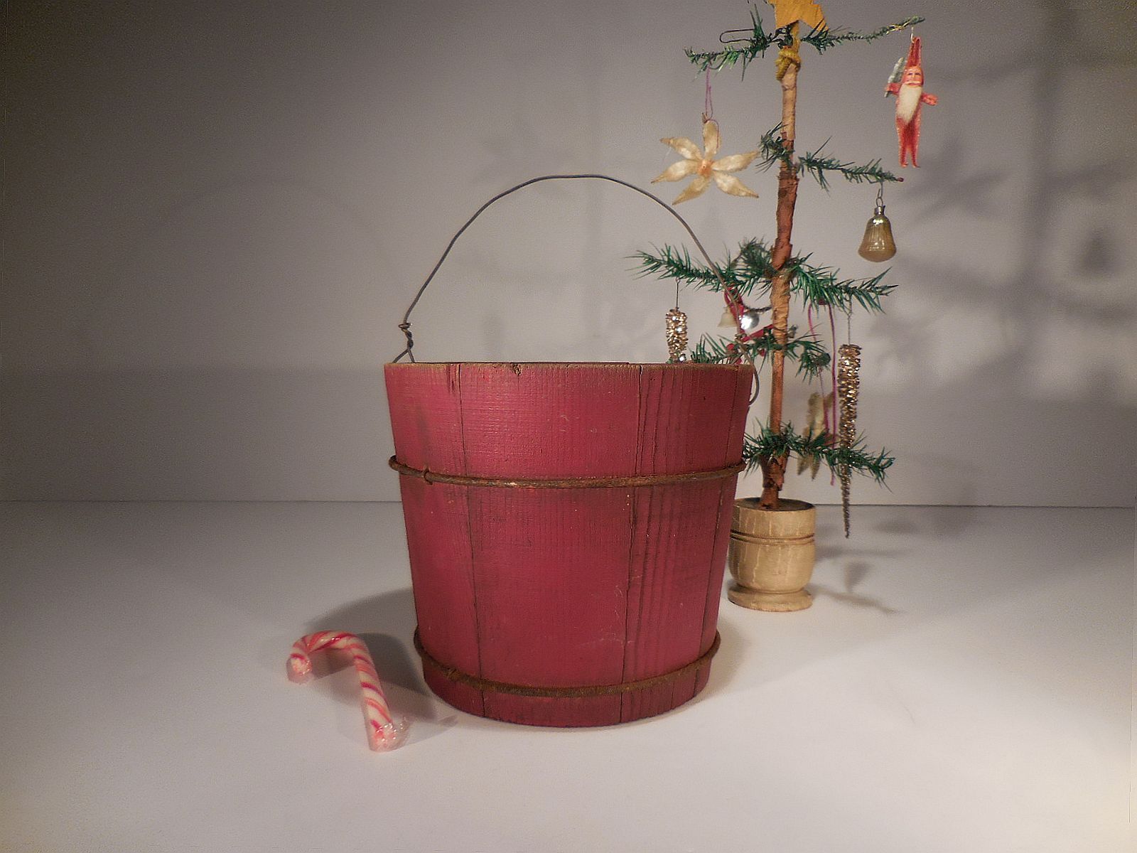 Title (ebay affiliate link): AAFA Little Primitive Pine Berry Bucket Wood Pail in Original Holiday Red Paint