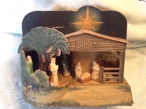 Title (ebay affiliate link): Vintage 1940s Clemco The First Christmas Lighted Musical Nativity Scene