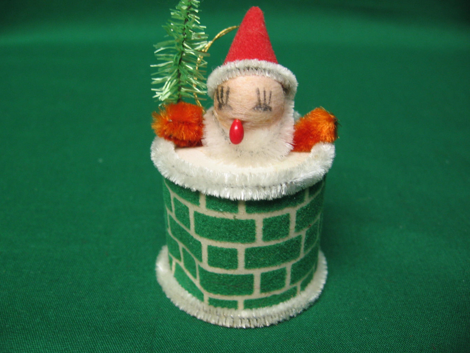 VINTAGE SANTA ELF IN CHIMNEY CHRISTMAS ORNAMENT SPUN COTTON HEAD JAPAN