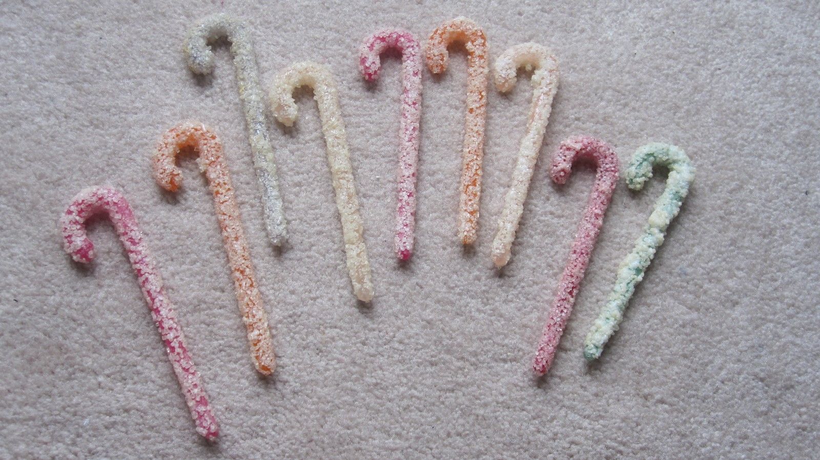 9 VINTAGE SUGARED HARD CANDYCANES LOT PASTEL PINK RED ORANGE GREEN PASTELS 5"