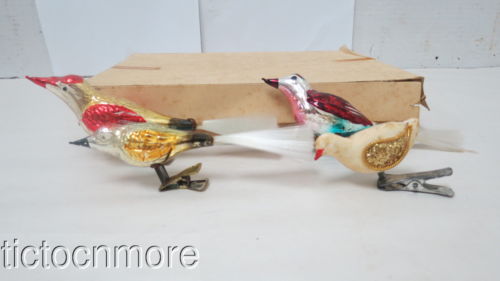 Title (ebay affiliate link): VINTAGE CHRISTMAS TREE CLIP ON GLASS HANDPAINTED BIRD CHRISTMAS ORNAMENTS & BOX