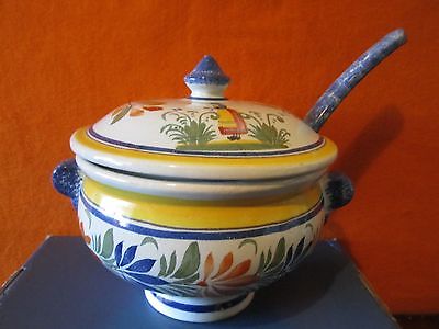 VINTAGE SOUP SERVING BOWL W/LID & LADEL,HENRIOT QUIMPER(FRANCE)& small bowl