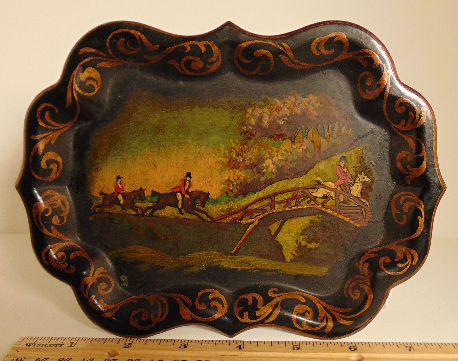 Vintage Hand Painted Equestrian Miniature Toleware Tray "Fox Hunt Scene" #2 NR!