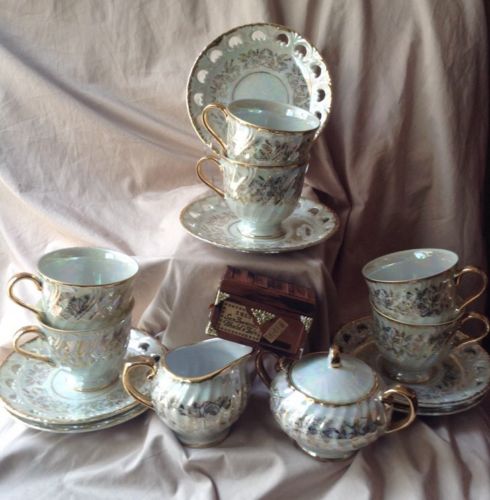 Title (ebay affiliate link): Vintage Tea Set KUDO TOKI Luster Wear 6 Cups & Saucers W/ Creamer & Sugar