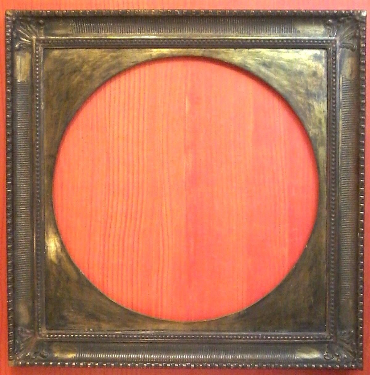 Title (ebay affiliate link): ANTIQUE SPANDREL MUSEUM PICTURE FRAME BRONZED GOLD FINISH 3.5" WIDE N/R