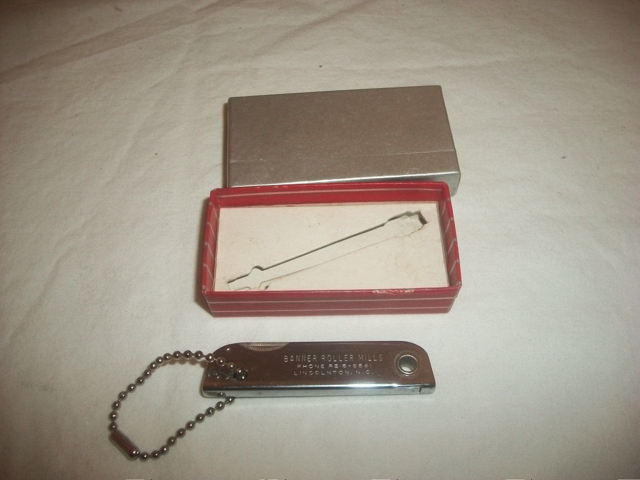 Vintage Lincolnton NC Key Chain Advertising Knife Banner Roller Mills