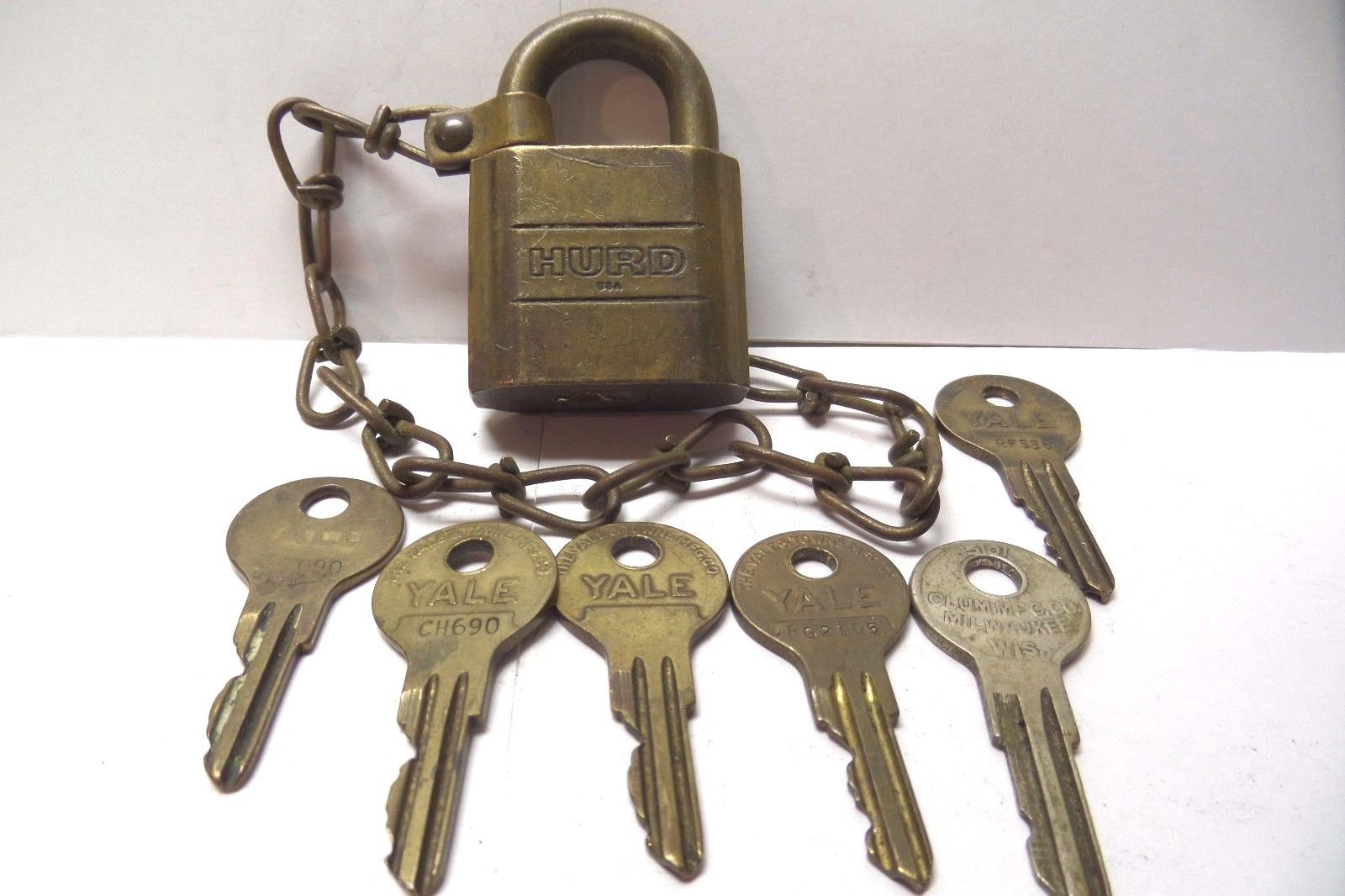 Title (ebay affiliate link): Vintage U.S. Brass Lock & Chain, No Working Key, and One Lot Misc. Keys