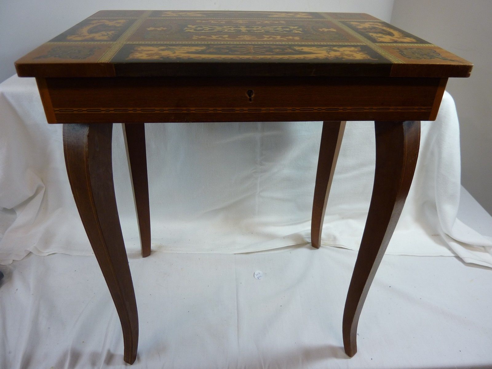 Title (ebay affiliate link): Sewing table, Musical. Italian made in med stained wood.Marquetry top. VGC # CP#