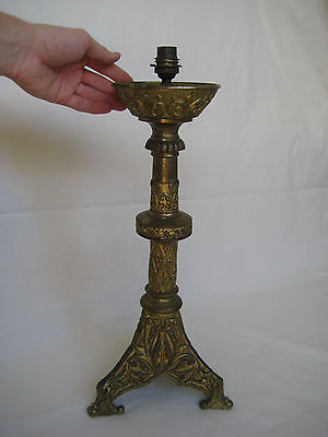 Antique Brass Gothic Pugin Style Table Lamp Base Candlestick