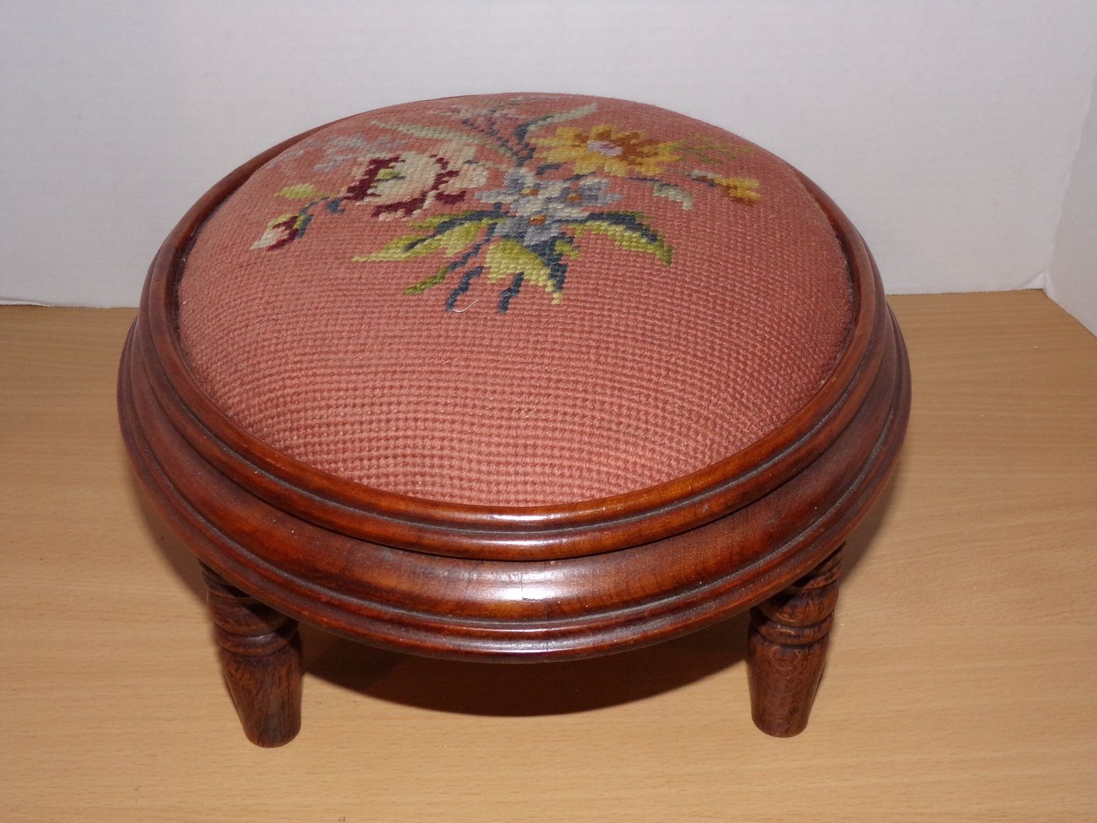 Title (ebay affiliate link): SMALL ANTIQUE OVAL FOOT STOOL PETIT POINT FLORAL NEEDLEPOINT MAUVE