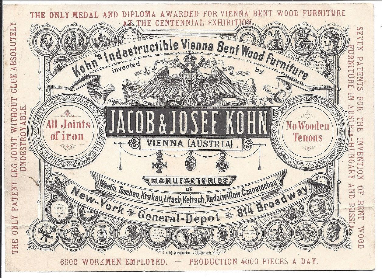 Title (ebay affiliate link): 1876 Centennial Exhibition Illus Ad Flyer Jacob & Josef Kohn Bent Wood Furniture