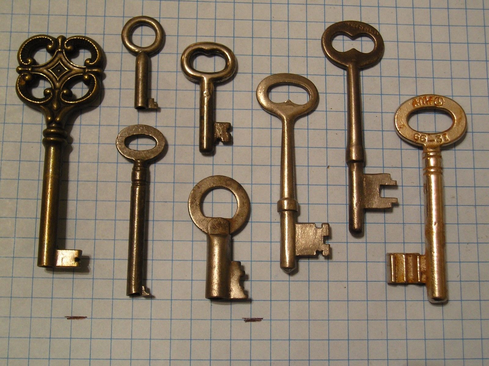 Title (ebay affiliate link): LOT OF 8 ANTIQUE KEYS, SKELETON, FURNITURE, BARREL, CABINET AND OLD LOCK KEYS