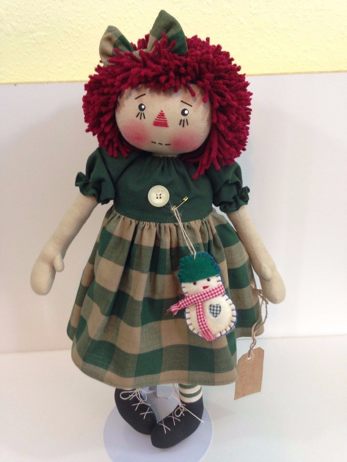 Title (ebay affiliate link): pRiMiTiVe FoLk aRt rAggEdY aNN AnniE DoLL / AnniE WiTh SnOwMaN