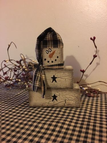 Title (ebay affiliate link): PRIMITIVE CRACKLE SNOWMAN WOOD BLOCK SHELF SITTER COUNTRY FARMHOUSE DECOR WINTER