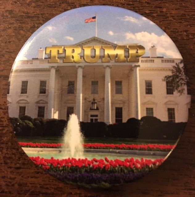 Title (ebay affiliate link): 2 1/4" White House With Large Gold Trump Letters Political Pinback Button