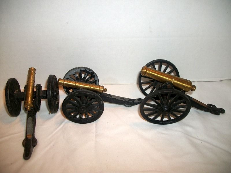 Three Vintage Cast Iron & Brass Miniature Cannons
