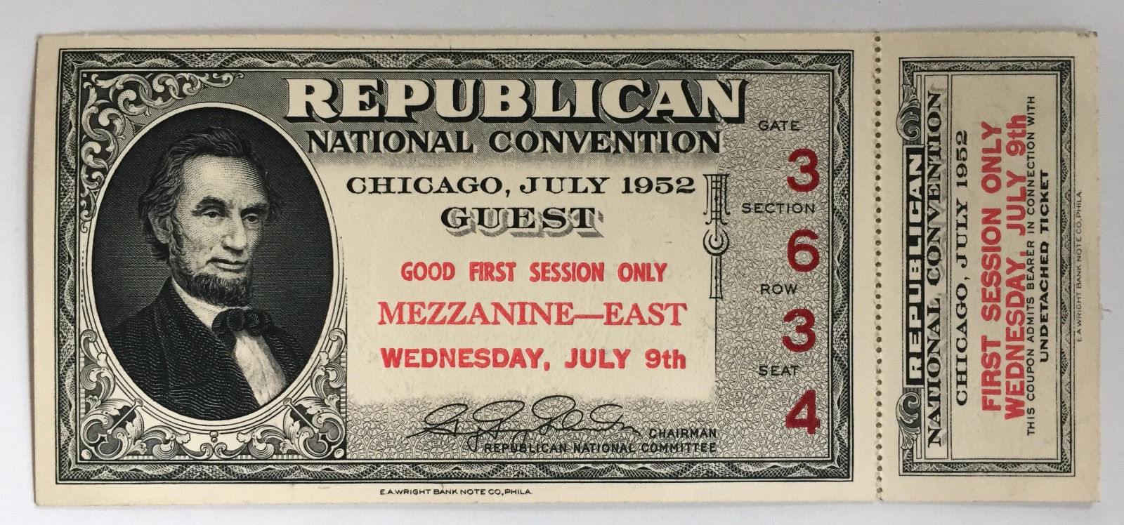 Title (ebay affiliate link): 1952 REPUBLICAN NATIONAL CONVENTION PRESIDENT EISENHOWER "Lincoln" TICKET wSTUB