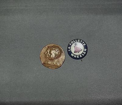 LaFollette and Wheeler Presidential Campaign Bronze Medal Pinback and Button