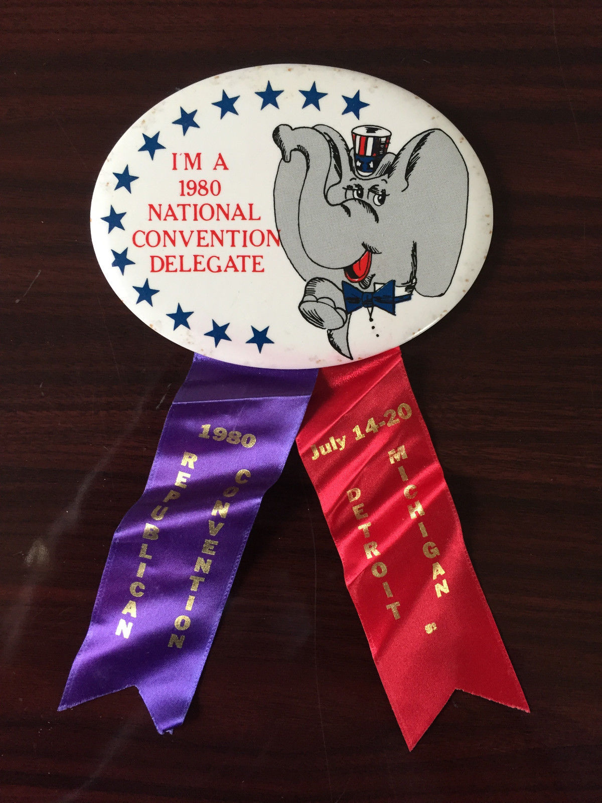 1980 REPUBLICAN NATIONAL CONVENTION DELEGATE CELLO RIBBON PIN PRESIDENT REAGAN !