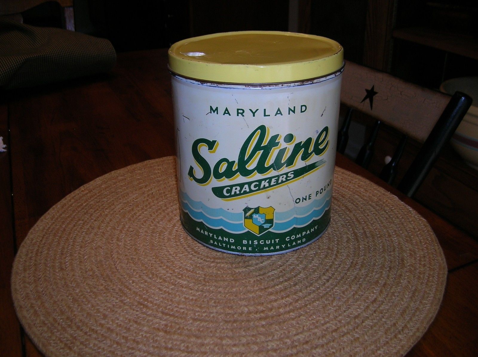 Title (ebay affiliate link): VINTAGE MARYLAND BISCUIT COMPANY SALTINE CRACKER TIN CAN BALTIMORE MD MARYLAND