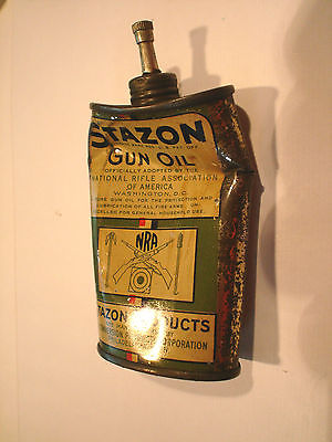 RARE STAZON GUN OIL TIN ADOPTED BY THE NRA, ZINC TOP