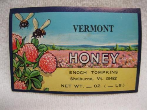 Title (ebay affiliate link): Enoch Tompkins Shelburne Vt Vintage Tin Jar Bottle Honey Labels Beekeeping