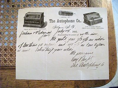 Collectible 1893 Advert. Letter Head "THE AUTOPHONE CO." Ithaca, New York