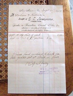 Collectible 1904 Bill Head "G.L. ARMBRISTER" Undertaker-Max Meadows,Virginia