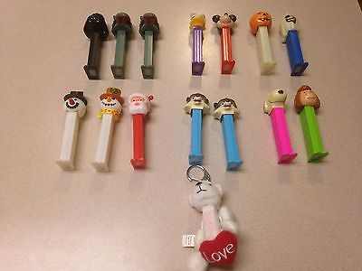 Lot of 15 Vintage PEZ Dispensers Key Chain Holiday Star Wars Peanuts Disney
