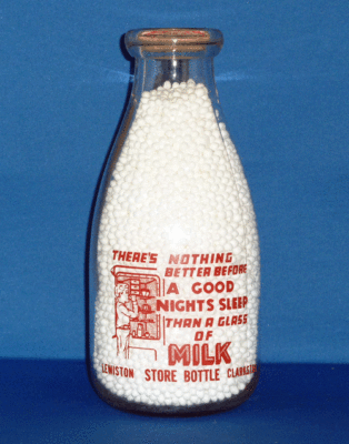 VINTAGE RED PYRO QT. MILK BOTTLE BOY AT FRIDGE 8 CENTS
