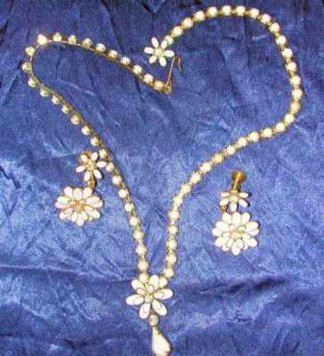 Retro Milkglass and Enameled Choker w/ Matching Earring