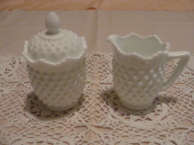 2 VINTAGE FENTON HOBNAIL MILK GLASS sugar and creamer