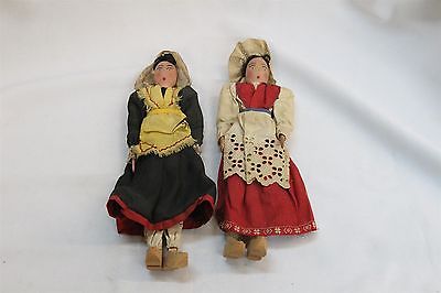 S Vintage Pair of Dutch Hand Made Painted Folk Art Dolls Articulated Primitive