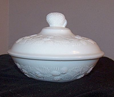 EAPG 1870 Hobbs Opal Milk Glass Blackberry Covered Dish