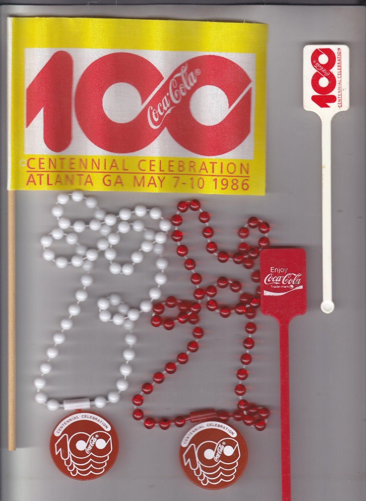 Title (ebay affiliate link): COCA-COLA COMPANY 100th ANNIVERSARY ADVERTISING PIECES 5 ASSORTED PIECES 1986
