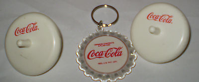 SET OF 2 COCA -COLA SPINNING TOPS AND COCA -COLA KEYCHAIN .